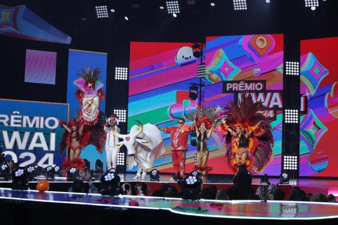 O Boi-Bumbá Garantido foi destaque no Prêmio Kwai 2024, realizado na noite desta quarta-feira (30/10), em São Paulo, com uma apresentação que celebrou a força e a tradição da cultura popular amazônica. Único Bumbá a se apresentar no evento, o Boi do Povão levou ao palco um espetáculo compacto e vibrante, representando o Norte do Brasil e o Festival Folclórico de Parintins.