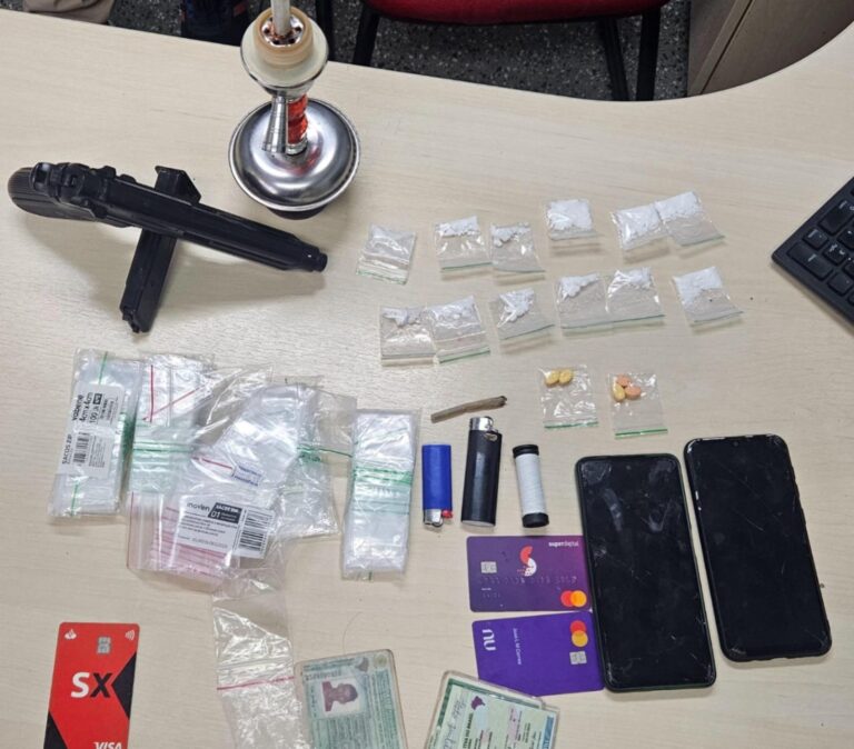 “Durante a ação na residência de João Lucas, apreendemos cinco comprimidos de droga sintética, 12 papelotes transparentes contendo cocaína, um simulacro de arma de fogo, uma motocicleta, dois aparelhos celulares e diversos apetrechos utilizados para o consumo, transporte e venda de entorpecentes”, detalhou o delegado.