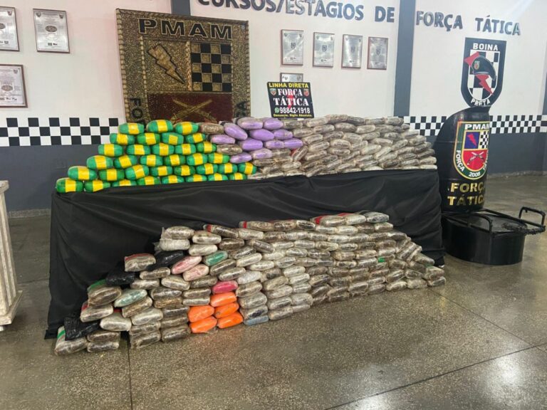 Policiais da Força Tática apreenderam 225 tabletes de drogas, na tarde desta terça-feira (14), dentro de um caminhão, na avenida das Torres, em Manaus.